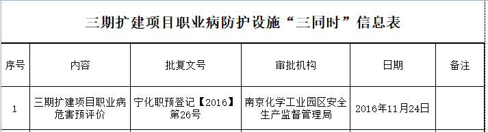 三期扩建职业病防护设施信息表