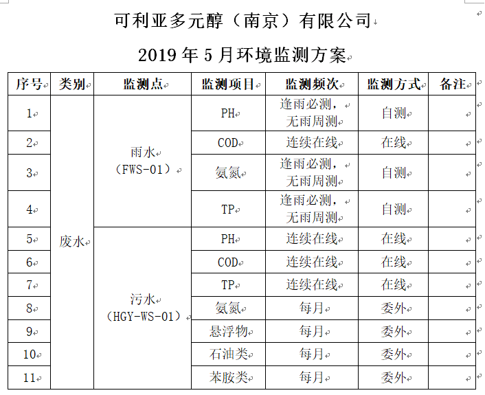 2019年5月环境监测数据