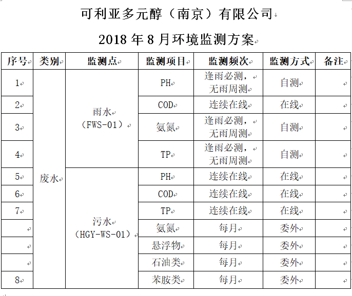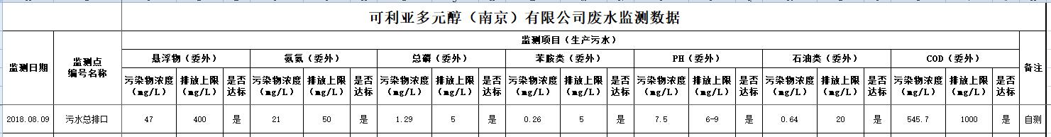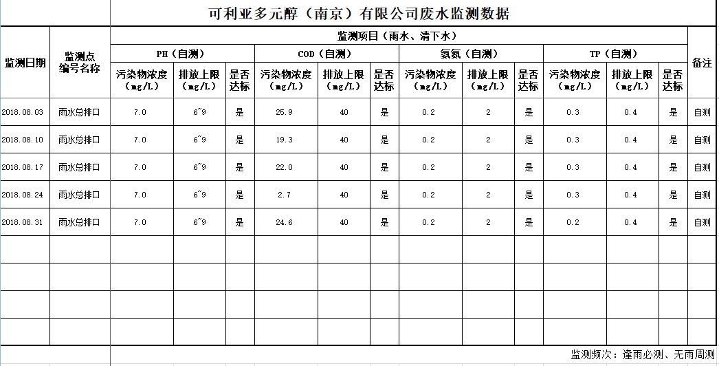 2018年8月环境监测数据